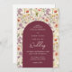 Convites Boho aquarela maroon ivory flores selvagens roxas