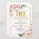O rosa dourado, dourado falso, flores rosas e peônias, rosa poeirento e folhagem de eucalipto se unem para criar um tema de jardim romântico boho. Combinar esses elementos com letras elegantes e modernas em estilo de aquarela resulta em um design de convite de 90 anos incrível. A combinação de tons pastéis suaves e folhagem natural evoca um charme caprichoso e sofisticação, perfeito para um convite de 80 anos romântico e memorável.