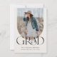 Boho Arch Simple Three Photo Budget Graduation Invitation apresenta uma foto na frente e duas fotos no verso, além de detalhes de convites para formatura.