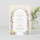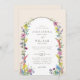 Este moderno convite para o casamento floral do boho apresenta uma trendy arch decorada com flores silvestres coloridas e brilhantes, em um fundo bege. Por favor, verifique a coleção para o resto do pacote de convites de casamento correspondente e mais produtos correspondentes.
