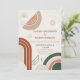 Torne o seu casamento verdadeiramente inesquecível com este convite de casamento boho inspirado no retro. Com tons terrosos de terracota, verde sage e creme, o design apresenta padrões geométricos modernos, incluindo semicírculos, arcos e acentos abstratos que exalam charme vintage. O layout minimalista permite que os detalhes do seu casamento se destaquem, complementando perfeitamente a estética geral. Ideal para casamentos boêmios, rústicos ou com tema terroso, este convite é uma maneira elegante de convidar seus convidados para o seu dia especial. Totalmente personalizável para combinar com a sua celebração única!