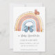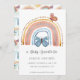 "Boho Neutro Arco Arco-Íris Pessegueiro Azul Dusty Boy ou Chamada de Chá de fraldas Neutro por Gênero." Arco-íris moderno, simples e desenhado à mão com estrelas, pontos e corações em cores mudas contemporâneas de pasta poeirenta e azul de aço, cinza prateada e ouro âmbar. O verso pode ter a cor de fundo alterada. Arte de uma artista e designer internacionalmente licenciada, Audrey Jeanne Roberts, copyright.
