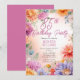 Elegant bohemian style aster flowers floral design "85th Birthday Party" design, featuring a floral frame of asters in a variety of colors, including purple, magenta rose pink and golden and butter yellow, on a pastel-toned watercolor background.