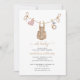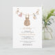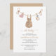 Oh, então roupas doces de bebê penduradas numa linha de roupa neste convite para chá de fraldas de vassoura. Knit romper, koala rattle e um pouco de coração. Este convite encantador tem tipografia de script com as palavras oh baby em bege mutado, assim como um roteiro para o nome da mãe.