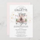 Uma festa de solteira de coloração aquosa fofa dorme debaixo das estrelas, com lantejoulas e luzes de cordas. "Nós não acampar, nós amontoamos". Estilo branco e bonitinho em rosa e branco. Cor-de-rosa sólida na parte de trás do convite. Um tema de tendências e chá de panela único. Crie uma celebração de óculos no quintal ou num campo de acampamento!
