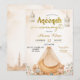 Convite de Cerimônia Boho Beige Floral Aqeeqah, Convite de Cerimônia Ramadhan Aqeeqah, Anúncio de Nascimento de Bebê Muçulmano Editável
