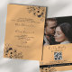 Elegante e moderno boho vintage preto e laranja, tudo em um convite de casamento com o código QR para RSVP, site, foto do casal, local floral dourado e simples roteiro de caligrafia.
