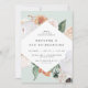 O elegante lanche floral ou convite de brunch apresenta um quadro em forma de diamante de flores de aquarela e folhagem em tons de pêssego, branco, marfim e verde de sábio inspirados no deserto de boho. Personalize com seus detalhes de lanche ou almoço.