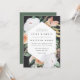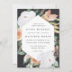 O convite para o casamento floral elegante apresenta os detalhes do seu casamento em letras modernas, em um quadro em forma de diamante geométrico de flores de aquarela pastel e folhagem botânica em tons de terra inspirados no deserto, de pêssego, verde-sábio, branco e marfim.