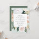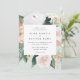 O convite para o casamento floral elegante apresenta os detalhes do seu casamento em letras modernas, em um quadro quadrado de flores de aquarela pastel e folhagem botânica em tons de terra inspirados no deserto de pêssego, verde-sábio, branco e marfim.