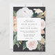 O convite para o casamento floral elegante apresenta os detalhes do seu casamento em letras modernas, em um quadro quadrado de flores de aquarela pastel e folhagem botânica em tons de terra inspirados no deserto de pêssego, verde-sábio, branco e marfim.