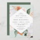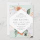 O elegante convite para chás de fraldas florais neutros de gênero apresenta um quadro em forma de diamante de flores de aquarela e folhagem em tons de pêssego, branco, marfim e verde de sábio inspirados no deserto de boho. Personalize com os detalhes do seu chá de fraldas.