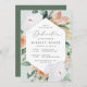 O convite para dedicação floral elegante para bebês apresenta um elongado quadro hexagonal de flores de aquarela e folhagem em tons de pêssego, branco, marfim e verde-sábio inspirados no deserto de boho. Personalize com sua cerimônia de dedicação à igreja e detalhes do partido em cartazes modernos.