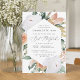 Elegante convite para morcegos florais mitzvah apresenta um elongado quadro hexagonal de flores de aquarela e folhagem em boho desert inspirados em tons de pêssego, branco, marfim e verde-sábio. Personalize com sua cerimônia de morcego mitzvah e detalhes do partido em letras modernas.