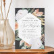 Elegante convite para morcegos florais mitzvah apresenta um elongado quadro hexagonal de flores de aquarela e folhagem em boho desert inspirados em tons de pêssego, branco, marfim e verde-sábio. Personalize com sua cerimônia de morcego mitzvah e detalhes do partido em letras modernas.