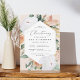 O convite elongante para batizar floral apresenta um elongado quadro hexagonal de flores de aquarela e folhagem em tons de pêssego, branco, marfim e verde-sábio inspirados no deserto de boho. Personalize com sua cerimônia religiosa e batizando detalhes do partido em letras modernas.