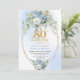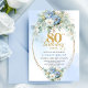 Convites Boho Blue Floral Peony Gold Frame 80th Birthday