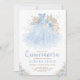 Quando se trata da quinceañera da sua filha, você realmente só tem uma oportunidade de fazê-la se sentir como a rainha do dia. Certifique-se de que todos os seus amigos e familiares venham com este convite elegante. A design apresenta um vestido brilhante de brilho azul-bebê adormecido com grama-palha, rosas azul-claro e creme e verde-mole. Clique no botão "personalizar mais" se quiser reorganizar e formatar o estilo e a posição do texto.