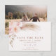 Boho Blush Floral Wedding Salve The Date Card Rustic boho, mas com uma reviravolta moderna, rosas embaçados e capim de pampas salve o cartão de data. Esse floral boêmio salva a data também mostra a foto do casal na parte traseira do cartão. Ideal para um casal procurando por um simples capim de pampas e um boêmio floral inspirado em salvar o cartão de data.