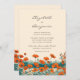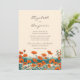 Este belo convite do Boho Wedding apresenta um desenho tinteiro de flores silvestres de papoila com cores quentes rústicas, laranja e lacre, inspirado na técnica tradicional japonesa de arte ukiyo-e ou impressões de blocos de madeira japoneses.