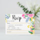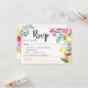 Boho bold flores selvagens primavera casamento rosa-verão, amarela, azul e verde do rsvp com escolhas comidas, alergias, necessidades dietéticas e opções de música.