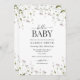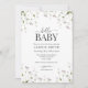 Crie seu próprio convite personalizado para chás de fraldas com design moderno minimalista com sotaques florais botânicos estilo boho.