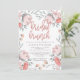 Este convite para o brunch na moda, feminino, chá de panela apresenta flores a cores aquáticas e folhas em tons mudos de rosa e cinza.