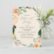 Lindo convites de festas de aposentadoria apresentando um elegante e moderno tom pastel verde-aquoso cor botânica e verde-verde em tons suaves de pêssego, laranja, pincel mole, amarelos e muitos tons de verde de verde-sábio para verdes brilhantes e profundos. Seus detalhes personalizados são exibidos em um elevado layout tipográfico que coloca o convidado de honra em frente e no centro.