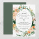 Lindos convites da Comunidade com um elegante tom pastel neutro, elegante e neutro, molhado floral botânico em tons suaves de pêssego, laranja, pincel suave, amarelos, e muitos tons de verde de sábio verde a verdes brilhantes e profundos. Seus detalhes personalizados são exibidos em um elevado layout tipográfico que coloca a doce garota na frente e no centro.