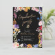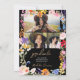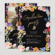 This modern boho graduation design features a vibrant frame of hand-painted wildflowers in a bright, cheerful palette, paired with soft script typography and a clean layout on editable black. The front highlights the event details with a delicate floral border, while the photo side showcases multiple images in a relaxed, storytelling style.
