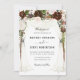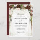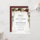 Um design de casamento boêmico com uma cobertura floral de rosas de burgundy, blush e brancas com folhagem verde, Você pode mudar o texto, tamanho do texto, cor e fonte neste convite de casamento.