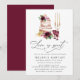 Convide convidados para o chá de panela em estilo com nossos convites de chá de panela Boho Burgundy e Blush Floral. O chá de panela apresenta um bolo com cor d'água com flores rosas e bordadas e flores cor-de-rosa embaçadas, candelabros e copos de vinho burgundy. A frase "O amor é doce" aparece em um roteiro de caligrafia moderno com os detalhes do seu chá de panela apresentados abaixo. O chá de panela floral se reverte para um fundo sólido de burlômetros.