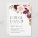 Convite para brunch floral de boho personalizável. Apresenta buquê floral de cor d'água de flores roxas, roxas, vermelhas e pêssego e folhas de eucalipto. Personalize este convite para brunch floral bridal ao adicionar o nome, hora, data e outros detalhes do evento do celebrante. Este chá de panela é perfeito para o outono ou para o outono.