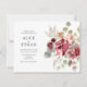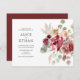 Nosso convite de casamento boêmico apresenta um buquê com flores de burgundy e verde. Perfeito para queda ou casamentos no inverno.