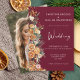 Este cartão de convite para casamento de fotos burgundy de festas de festas de vassoura combina lindamente o encanto dos florais de inverno com a elegância eterno de burgundy. Eles são um convite sincero para que seus entes queridos testemunhem a magia da sua história de amor se desdobrando.