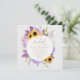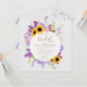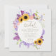 Uma rica e elegante coroa feita de flores exuberantes, girassóis, lavandas, trigo, hálito de bebê, mariposa e ranúnculo faz uma bela ilustração, pintada à mão em aquarela digital, que decora este chá de panela elegante rústico quadrado. Romântico e charmoso, é uma escolha encantadora para um chá de panela de celeiro, um chá de panela ao ar livre, um chá de panela de jardim ou quintal ou qualquer cenário rústico.