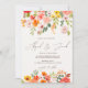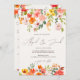 Apresentando nosso encantador Boho caia Casamento Floral tudo em um Convite, uma bela mistura de flores vibrantes pintadas à mão em tons de rosa, laranja, amarelo e verde. Este elegante design apresenta flores em cascata de cima e de baixo, enquadrando seus detalhes de casamento com um toque da beleza da natureza boêmica. A moderna e elegante letra do roteiro de pincel adiciona um toque sofisticado e pessoal, complementando perfeitamente o romântico motif floral. Ideal para um verão ou casamento outono, este convite dá o tom para uma celebração alegre e inesquecível. Personalize-o com os seus detalhes de casamento no fundo para criar uma única e memorável manutenção para os seus convidados.