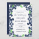 Airelas frutas de água. Elegante, lindo, azul, convites de casamento. Mão pintou mirtilos de aquarela sozinho. Personalize-o com seus detalhes.