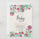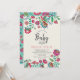 Um convite para o Chá de fraldas Boho, Bohemian Chic, com um belo padrão de flores folclóricas pintado à mão de na moda.