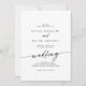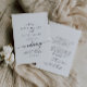 Este convite de casamento preto e branco e de frente e verso é perfeito para um casamento minimalista. O design boêmico preto-e-branco, moderno, apresenta uma caligrafia rústica simples com um estilo único, mas clássico. Perfeito para qualquer estação: primavera, verão, outono ou inverno. Salve o papel, incluindo mais detalhes na parte traseira do convite em vez de em uma placa de gabinete separada.