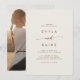 Este convite casual de casamento de boêmia creme boêmica é perfeito para um casamento minimalista. O teracotta neutro queimado laranja e creme design boêmico moderno apresenta uma caligrafia rustica simples com um estilo único, mas clássico. Personalize a parte de trás do seu convite de casamento com a sua foto de noivado favorita.