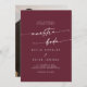 Este convite de casamento espanhol com burgundy vermelho de burgundy chic é perfeito para um casamento minimalista. O design da boêmia moderna, vinho marrom escuro, apresenta caligrafia rústica simples com estilo único, mas clássico. Personalize a parte de trás do seu convite de casamento com a sua foto de noivado favorita.