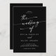 Esta cor bófia editável o casamento de convite é perfeita para um casamento minimalista. O sofisticado e chico design boêmico preto-escuro apresenta uma simples caligrafia rústica com um estilo único, mas clássico.