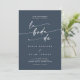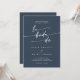 Este boho chic marinho azul escuro QR code O convite de casamento espanhol é perfeito para um casamento minimalista. A design boêmica moderna azul-escura, silenciosa e moderna, apresenta uma caligrafia rústica simples com um estilo único, mas clássico. Inclua um código QR na parte traseira do seu convite de casamento para que o convidado possa facilmente RSVP, ver detalhes ou ambos.
