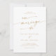 Este boho chic gold e o código QR branco O convite para casamento francês é perfeito para um casamento minimalista. O ouro amarelo neutro e o design boêmico branco moderno apresentam uma caligrafia rústica simples com um estilo único, mas clássico. Inclua um código QR na parte traseira do seu convite de casamento para que o convidado possa facilmente RSVP, ver detalhes ou ambos.