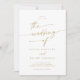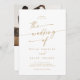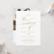 Este boho de ouro cólico, foto branca e convite de casamento com código QR é perfeito para um casamento minimalista. O ouro amarelo neutro e o design boêmico branco moderno apresentam uma caligrafia rústica simples com um estilo único, mas clássico. Personalize a parte de trás do seu convite de casamento com a sua foto de noivado favorita. Inclua um código QR para convidado para RSVP fácil, ver detalhes ou ambos.