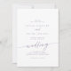 Este convite de casamento roxo e roxo de boho é perfeito para um casamento minimalista. A lavanda da boêmia branca e roxa design com de luz apresenta uma caligrafia rustica simples com um estilo único, mas clássico. Salve o papel, incluindo mais detalhes na parte traseira do convite em vez de em uma placa de gabinete separada.