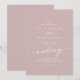 Este convite de casamento rosa de rosa empoeirado é perfeito para um casamento minimalista. O rosa de design boêmio moderno cor-de-rosa-pincel-azul-, neutro, apresenta uma caligrafia rústica simples com um estilo único, mas clássico.