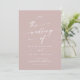Esta foto cor-de-rosa rosa empoeirada e convite de casamento de código QR é perfeita para um casamento minimalista. O rosa de design boêmio moderno cor-de-rosa-pincel-azul-, neutro, apresenta uma caligrafia rústica simples com um estilo único, mas clássico. Personalize a parte de trás do seu convite de casamento com a sua foto de noivado favorita. Inclua um código QR para convidado para RSVP fácil, ver detalhes ou ambos.