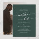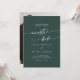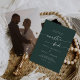 Este convite de casamento espanhol para o esmeralda da Bicho é perfeito para um casamento minimalista. O design verde boêmico moderno da floresta de caçadores de escuros e modernos apresenta uma caligrafia rústica simples com um estilo único, porém clássico. Personalize a parte de trás do seu convite de casamento com a sua foto de noivado favorita.